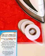 ![]() ![]() HEAT Press Batting Together™ is happy to introduce our new product for online sales, retail and wholesale distribution. HEAT Press Batting Together™ was invented to fuse batting/wadding and fabric together to fit a specific size, to enlarge or reinforce. The HEAT Press Batting Together™ is 1 ½ inch (3.81cm) cloth tape on a 15 yard roll (13.7m), and will allow batting edges to be fused together with a soft fuse that stretches, eliminating the old pinning and stitching of extra batting/wadding pieces needed to fit a specific project. The product can be used on any batting/wadding fabric content.